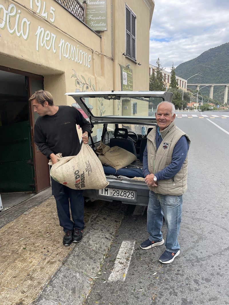 Ecco, questa è l’immagine del ponente ligure nel mese di ottobre: una Pandina targata “IM”, carica di sacchi di olive.