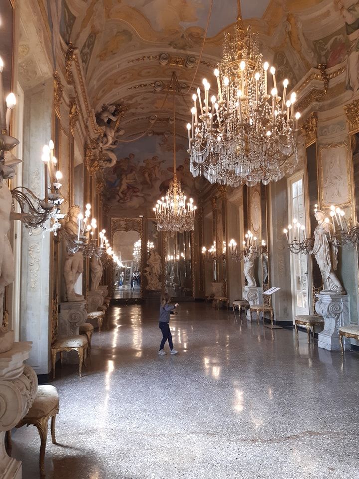 È tornata fruibile dal pubblico la Galleria degli Specchi di Palazzo Reale, in via Balbi. Nonostante siano ancora in corso i restauri dei lampadari, delle appliques, degli arredi e delle sculture, il visitatore avrà così modo di poter ammirare la sala come doveva apparire agli occhi dei committenti, la famiglia Durazzo, nel primo Settecento, appena finita la decorazione della volta e delle pareti.