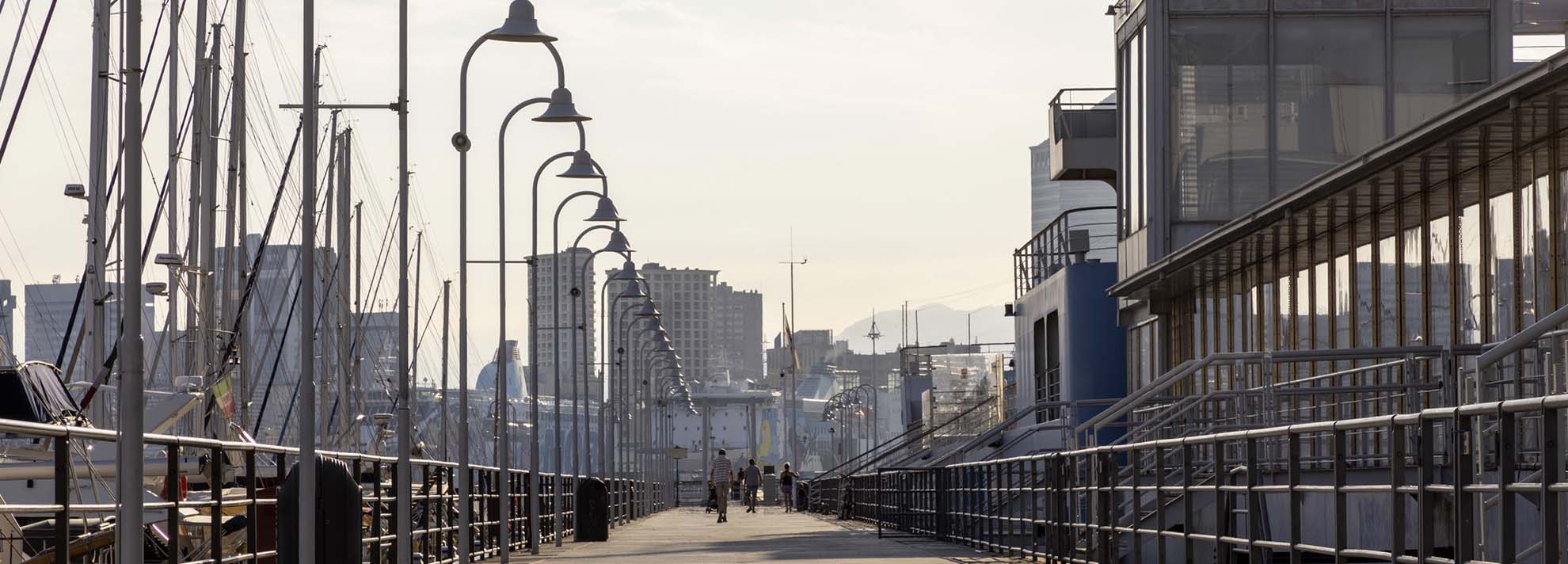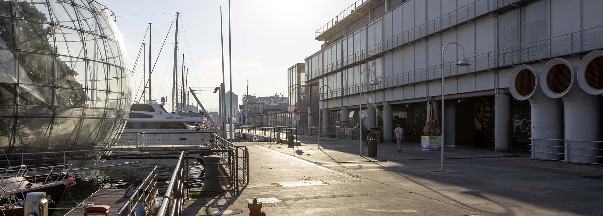 Una volta fuori dall’Acquario, sei sul mare, lungo il molo intitolato a Fabrizio De André. Prendi uno dei battelli per le escursioni marine e il whale watching che partono dai moli del Porto Antico. Ma prima di salire, procedi lungo il molo e raggiungi l’isola delle chiatte: un molo galleggiante ricavato sopra antiche chiatte, dove puoi ammirare Genova da una prospettiva insolita.
